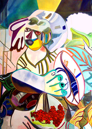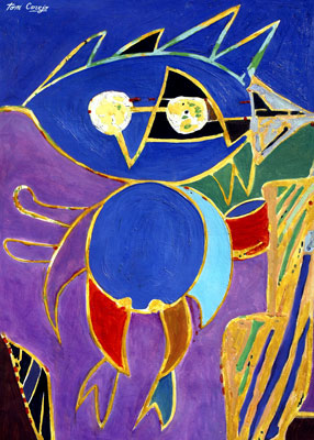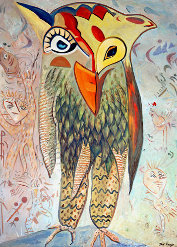 "El buho guardian". obra de Toni Conejo. Óleo sobre lienzo. 92 X 73 Cms.