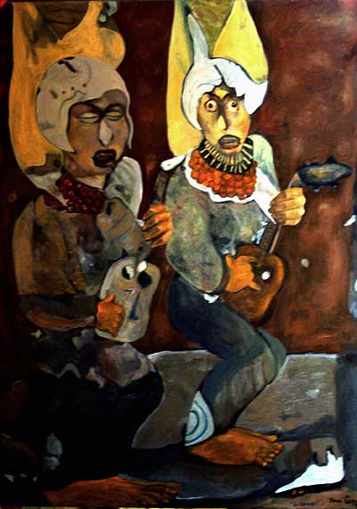 Musicos, 92 X 73 cms 30F.Óleo sobre lienzo de Toni Conejo. Oil on Canvas