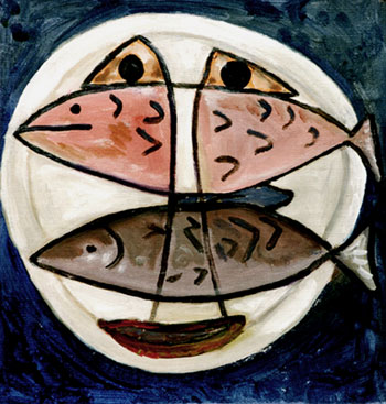 Plato de peces óleo sobre lienzo obra de antoni Conejo. Oil on canvas