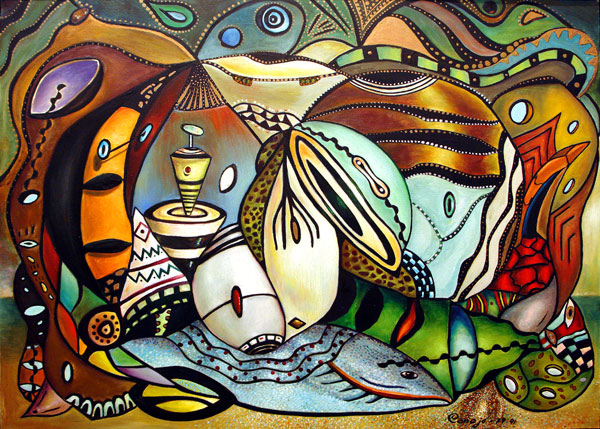 La gallina de los huevos de oro. óleo sobre lienzo de Toni Conejo. Oil on canvas