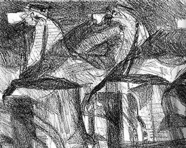 Caballos Helenos. Óleo y técnica mixta de Toni Conejo