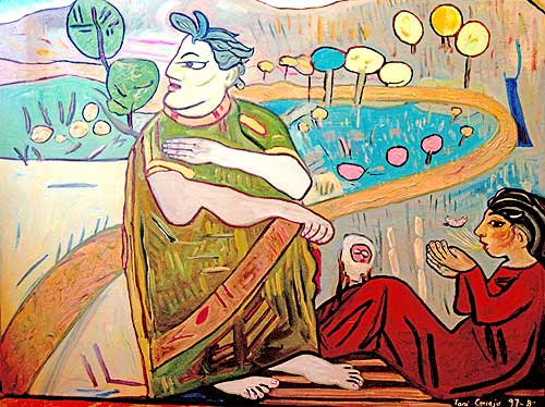 Los juegos florales, 146 X 114 cms 80 F. óleo sobre lienzo de Toni Conejo