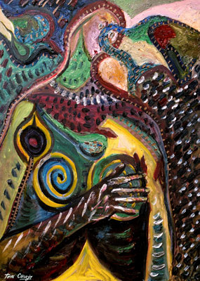 Especie de totem. Óleo sobre lienzo de toni Conejo