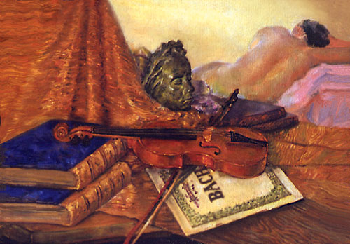"violín con modelo al fondo" Óleo sobre lienzo. Alegoría de la musica. Colección Eduardo Rojo Madrid.