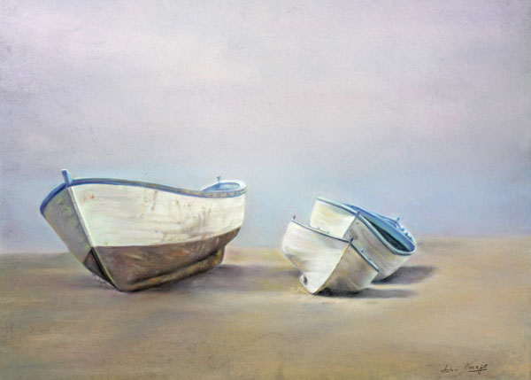 Tres barquitas del Puerto de la Cruz Tenerife. Técnica: Pastel
