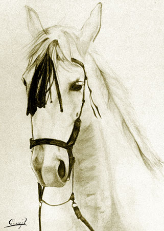 Estudi de retrato de caballo. Técnica lápiz litográfico. Colección particular