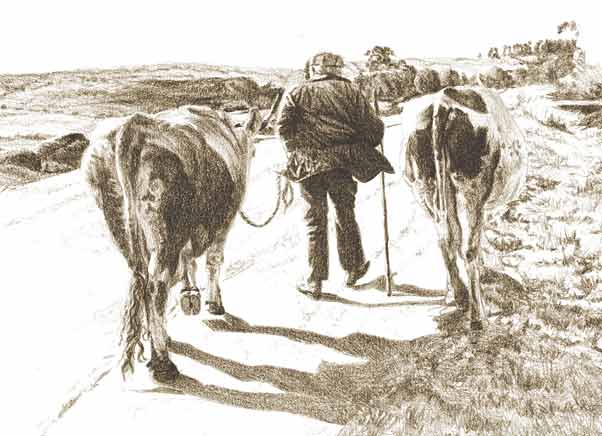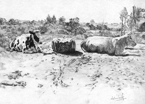 Vacas en el camino. Lápiz grafito sobre papel