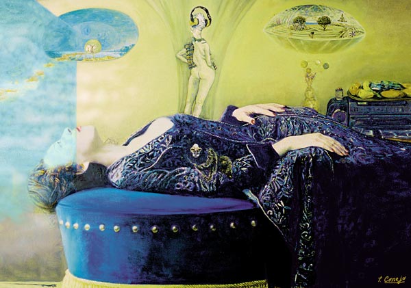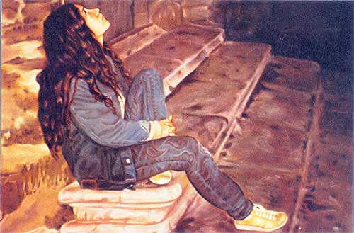 Escalera al cielo. Óleo sobre lienzo. )2 x 73 Cms. Obra expuesta en la Caixa de Barcelona, el Círculo artístico de Sant lluc, el Maremagnum de Barcelona, registrada y catalogada por agrupación mutua y sociedad gestora de derechos de autor.