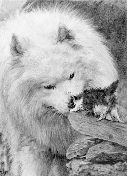 Huskin y gatito. estudio de animales. lápiz grafito.
